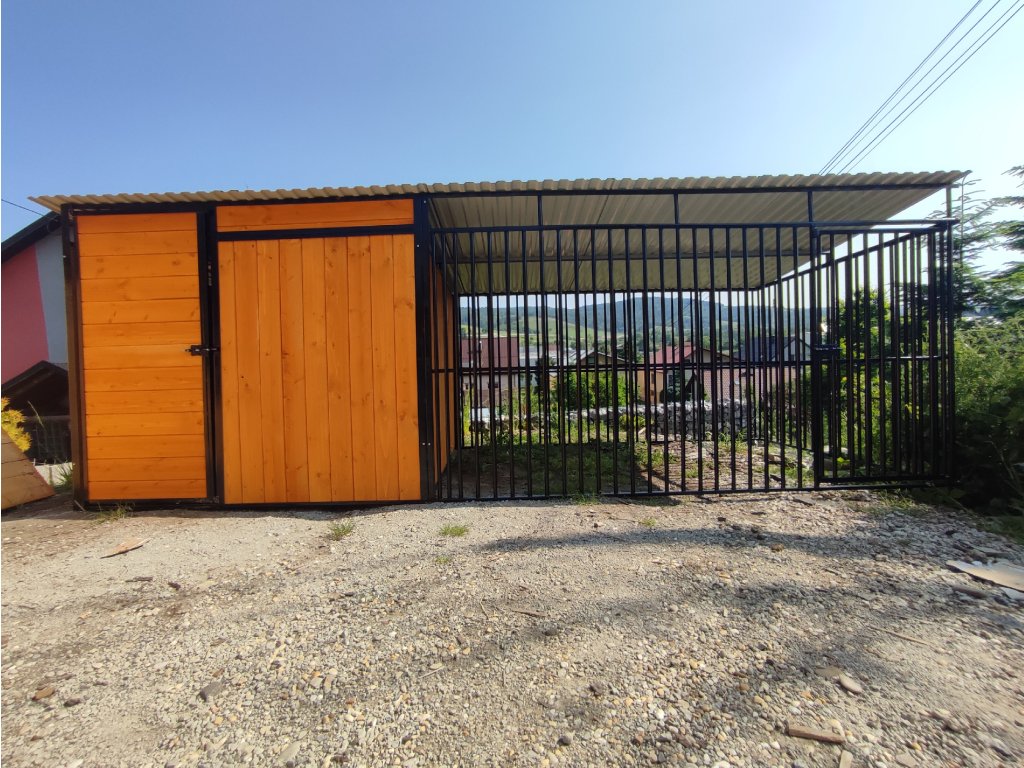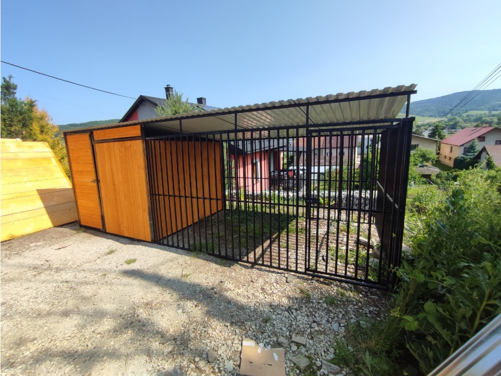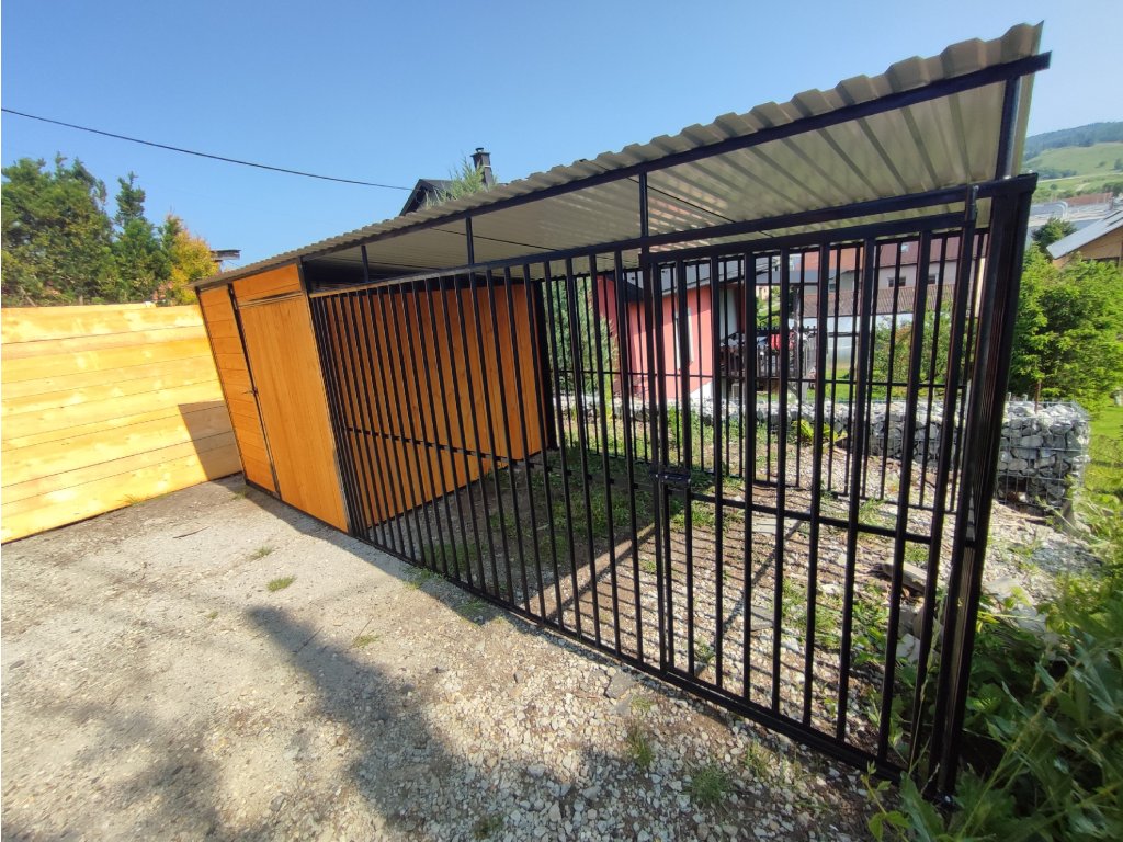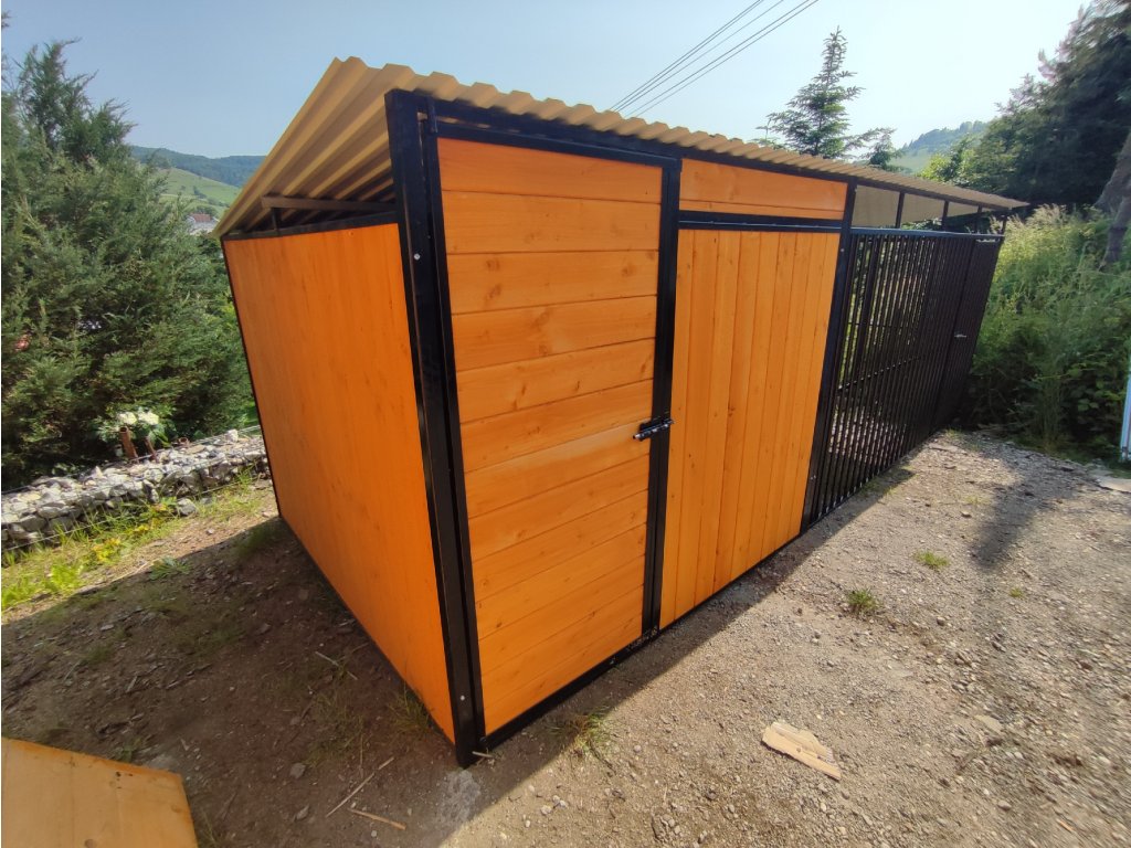 ČERNY KOVOVÝ KOTEC S ÚLOŽNÝM PROSTOREM 5x2m