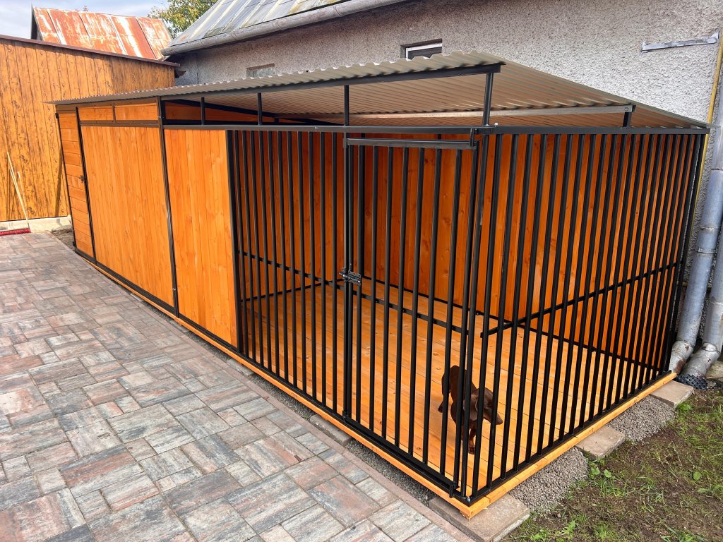 ČERNY KOVOVÝ KOTEC S ÚLOŽNÝM PROSTOREM 6x2m
