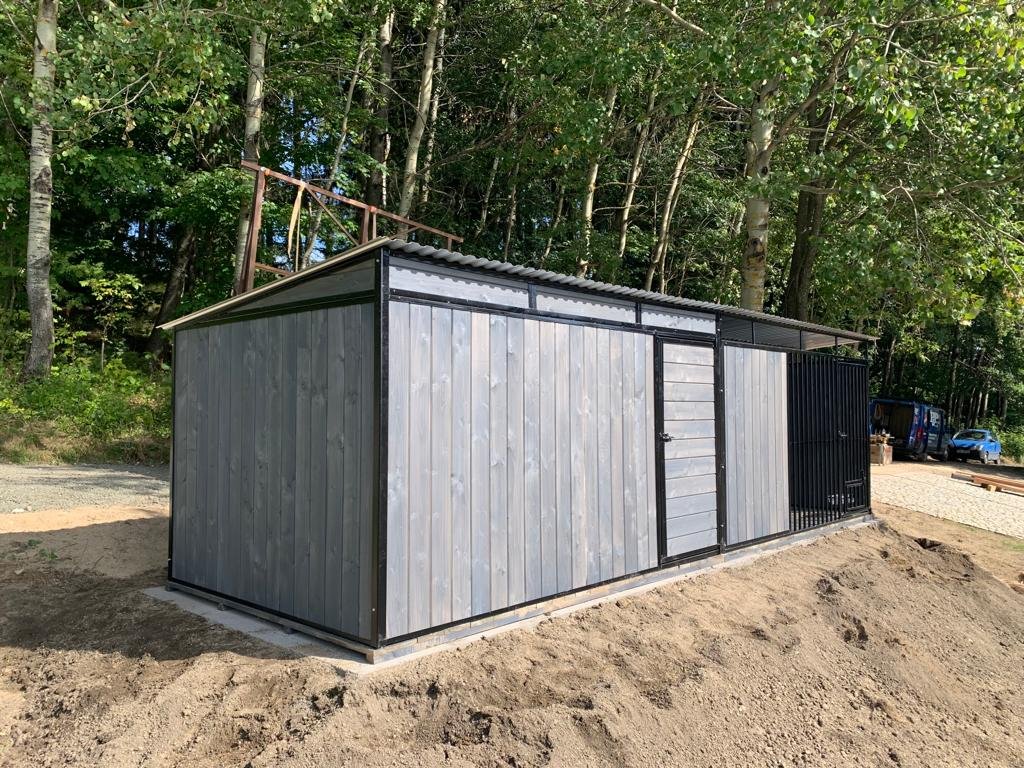 ČERNY KOVOVÝ KOTEC S ÚLOŽNÝM PROSTOREM 6x2m ANTRACIT